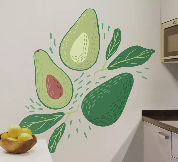 Entdecken Sie die farbenfrohe Welt der Aufkleber Früchte avocado-bündel, die mit einem frischen und lebendigen Design begeistert. Die harmonische Kombination aus Avocados, Früchten, und Blättern in satten Grüntönen spiegelt die Schönheit der Natur wider. Diese Aufkleber bringen nicht nur einen Hauch von gesundem Lebensstil in Ihre Umgebung, sondern verleihen auch jeder Fläche einen einladenden und fröhlichen Charakter!