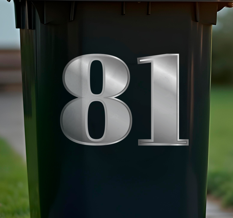 Entdecken Sie unser einzigartiges Aufkleber Mülltonne Hausnummernschild, das nicht nur funktional, sondern auch ansprechend gestaltet ist. Mit klaren Zahlen in einem eleganten Silberton und der Möglichkeit, einen benutzerdefinierten Text hinzuzufügen, wird dieses Etikett zum idealen Container für Ihre Adresse. Gestalten Sie Ihr Zuhause individuell und sorgen Sie dafür, dass Ihre Anschrift sowohl im Innen- als auch im Außenbereich gut sichtbar ist.
