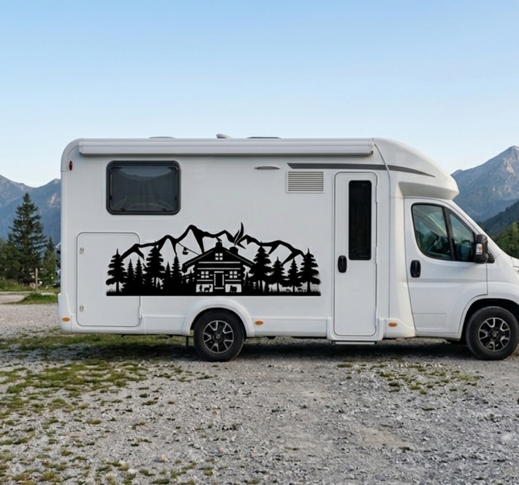 Autoaufkleber berg-hütten-silhouette
