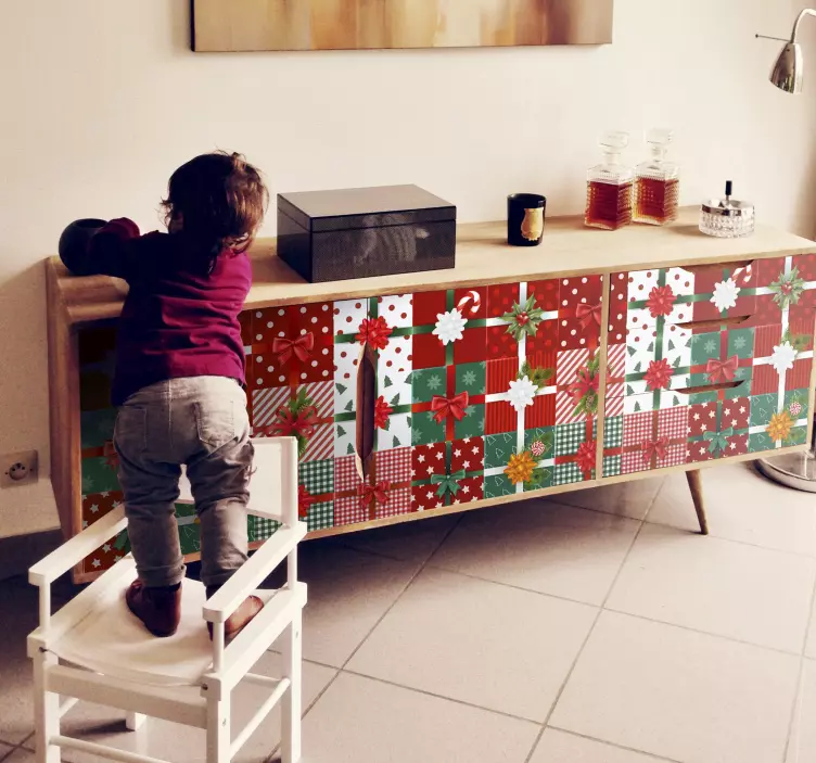 Verleihen Sie Ihrer festlichen Geschenkverpackung mit unserem Feiertag Wandtattoo für festliche Geschenkverpackung einen Hauch von Magie! Das design umfasst ein fröhliches Zusammenspiel von rot und grün, mit karierten Quadraten und dekorativen Schleifen, die an die besinnliche Weihnachtszeit erinnern. Die Muster sind nicht nur ansprechend, sondern bringen auch eine festliche Atmosphäre in jeden Raum. Ob zu Hause oder im Büro, dieses Wandtattoo verwandelt Ihre Umgebung in ein wahres Winterwunderland!