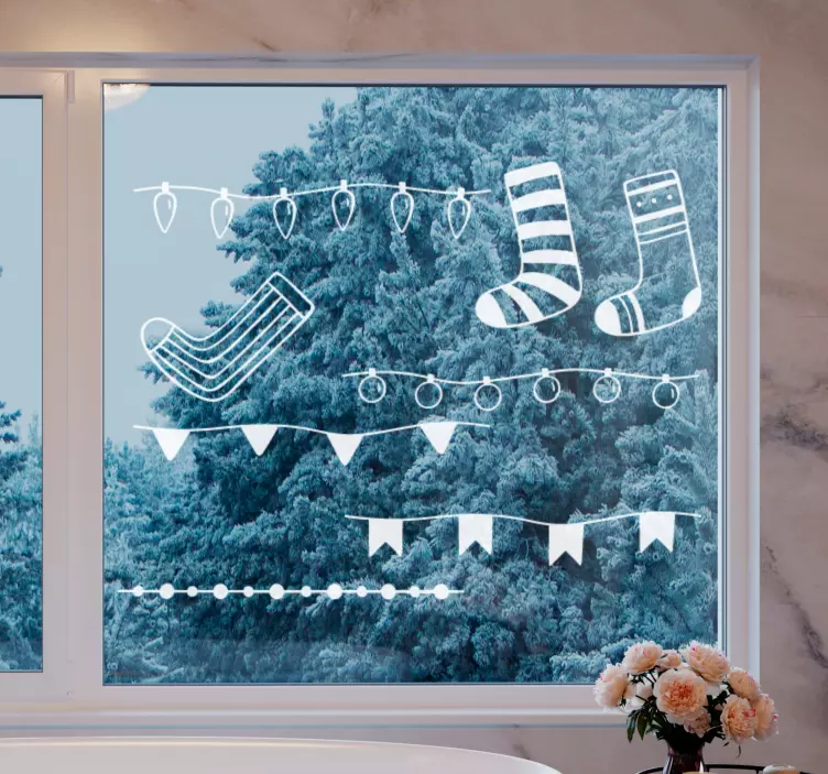 Verleihen Sie Ihrem Zuhause mit unserem Feiertag Wandtattoo Sockenhalter Deko eine festliche Note! Das Design kombiniert Strümpfe, Ornamente und eine Girlande in einem harmonischen Zusammenspiel von Farben und Formen, das jeden Raum zum Strahlen bringt. Die festliche Beleuchtung und der kreative Fensteraufkleber sorgen für eine einladende Atmosphäre und lassen die Vorfreude auf Weihnachten spürbar werden. Mit diesem einzigartigen Banner setzen Sie einen fröhlichen Akzent und schaffen eine gemütliche Stimmung für die ganze Familie.