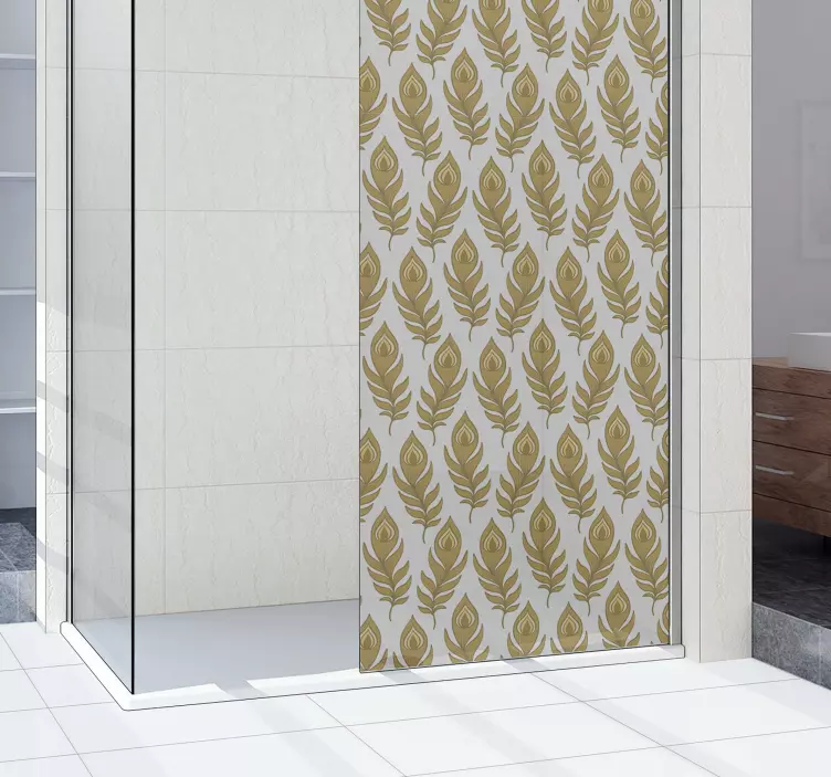 Die Folie Duschkabine mit elegantem Blattelement ist ein Meisterwerk des Designs, das die Schönheit der Natur in Ihr Badezimmer bringt. Mit einem kunstvollen Muster, das von Blumen und gefiederten Blättern inspiriert ist, erzeugt diese Duschwand eine harmonische Atmosphäre. Die goldenen Akzente verleihen der Duschkabine eine gewisse Finesse und machen sie zu einem dekorativen Highlight in Ihrem Zuhause. Die komplizierten Details und die dekorativen Elemente sorgen für einen einzigartigen Look, der sowohl elegant als auch einladend wirkt.