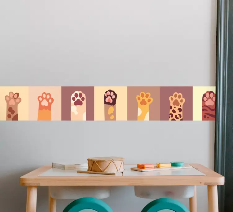 Entdecken Sie die bezaubernden Katzen Sticker fröhliche pfotenabdrücke, die mit einem lebendigen Design versehen sind, das Fliesen, Pfoten in einer charmanten Karikatur darstellt. Die bunten Muster und der verspielte Rand verleihen jedem Raum eine fröhliche Note und machen Ihr Zuhause zu einem einladenden Ort für Tierliebhaber. Jedes Detail in diesem Aufkleber fängt die Herzen von Katzenfreunden ein und bringt die tierische Freude in Ihr Zuhause!