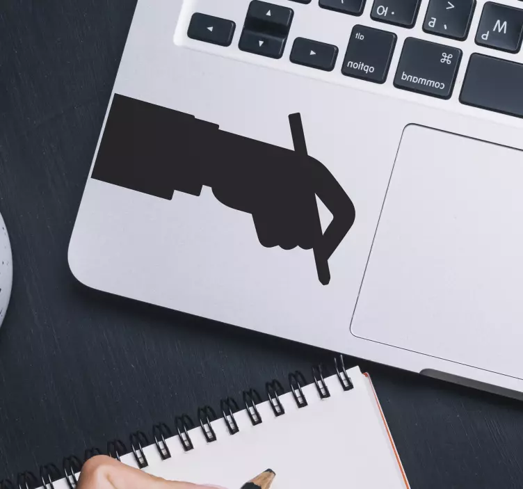 Entdecken Sie unseren einzigartigen Laptop Aufkleber Hand mit Bleistift, der eine kreative und künstlerische Silhouette einer Hand darstellt, die mit einem Bleistift schreibt. Dieses Design bringt nicht nur Stil, sondern auch Inspiration in Ihren Arbeitsbereich. Die schwarze Silhouette hebt sich perfekt von jedem Laptop ab und sorgt für einen modernen, ansprechenden Look.