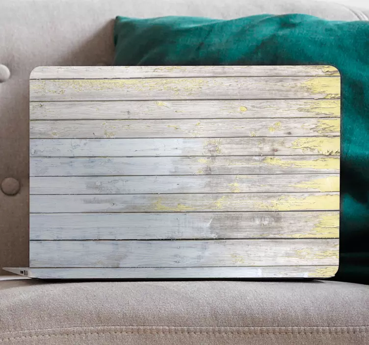 Entdecken Sie den einzigartigen Laptop Aufkleber im rustikalen Holzlook, der Ihrem Gerät einen charmanten und natürlichen Touch verleiht. Das Design erinnert an verwitterte Bretter, die in einem warmen Gelb und Weiß gehalten sind. Die hölzerne Textur sorgt dafür, dass Ihr Laptop wie ein Stück Wohnwand aussieht, das den rustikalen Stil perfekt einfängt. Verleihen Sie Ihrem Arbeitsumfeld eine gemütliche und stilvolle Atmosphäre!