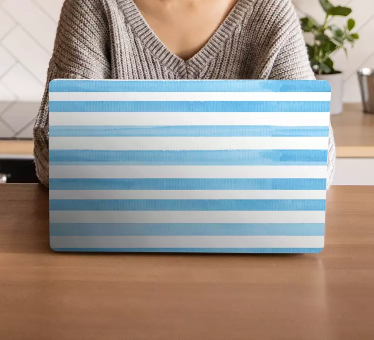 Laptop aufkleber mit blauer gestreifter oberfläche