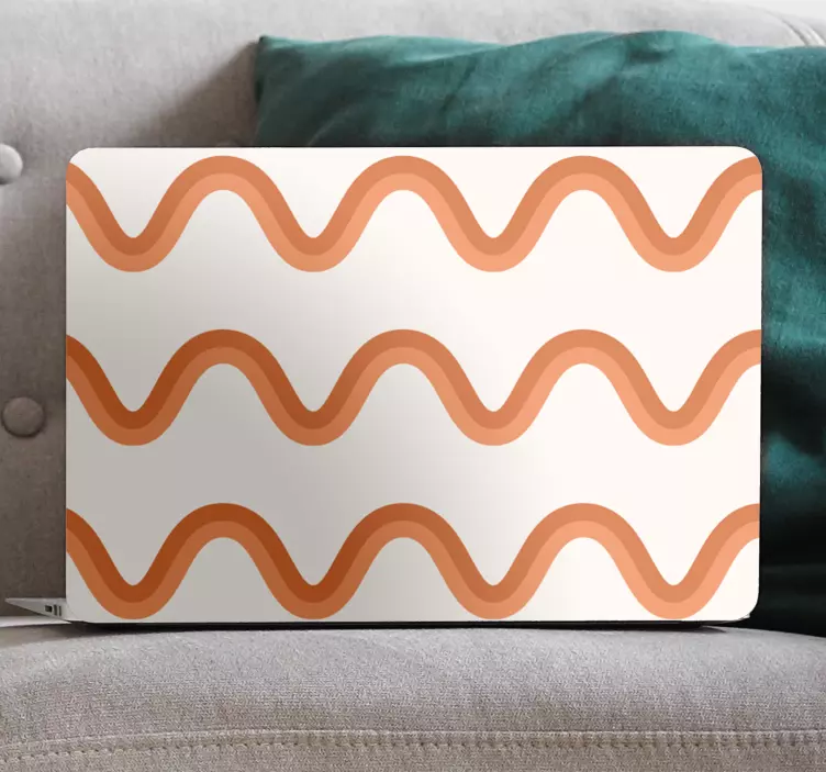 Entdecken Sie die faszinierende Welt unseres Laptop Aufklebers mit Wellenmuster Gestaltung, der durch seine orange Farbe und das kreative 70er Design besticht. Die wellig gestalteten, gebogenen Striche und das geometrische Muster verleihen Ihrem Laptop einen modernen, minimalistischen Look, der sowohl abstrakt als auch ansprechend ist.