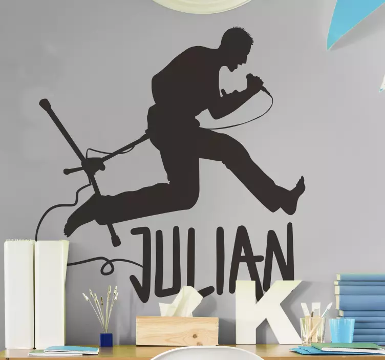 Entdecken Sie unser musikalisches wandtattoo energetische gesangsdarbietung, das mit einem dynamischen Design begeistert. Die beeindruckende Silhouette eines Rockstars, die kraftvolle Ausstrahlung eines Sängers und die künstlerischen Elemente der Rockmusik vereinen sich zu einem einzigartigen Kunstwerk. Dieses musikalische wandtattoo bringt Energie in jeden Raum und lässt jeden Besucher spüren, dass hier Musik und Leidenschaft leben. Dank der Anpassungsfähigkeit können Sie den Namen Ihres Lieblingskünstlers hinzufügen und somit eine persönliche Note setzen, die jugendlichen Schwung ausstrahlt!