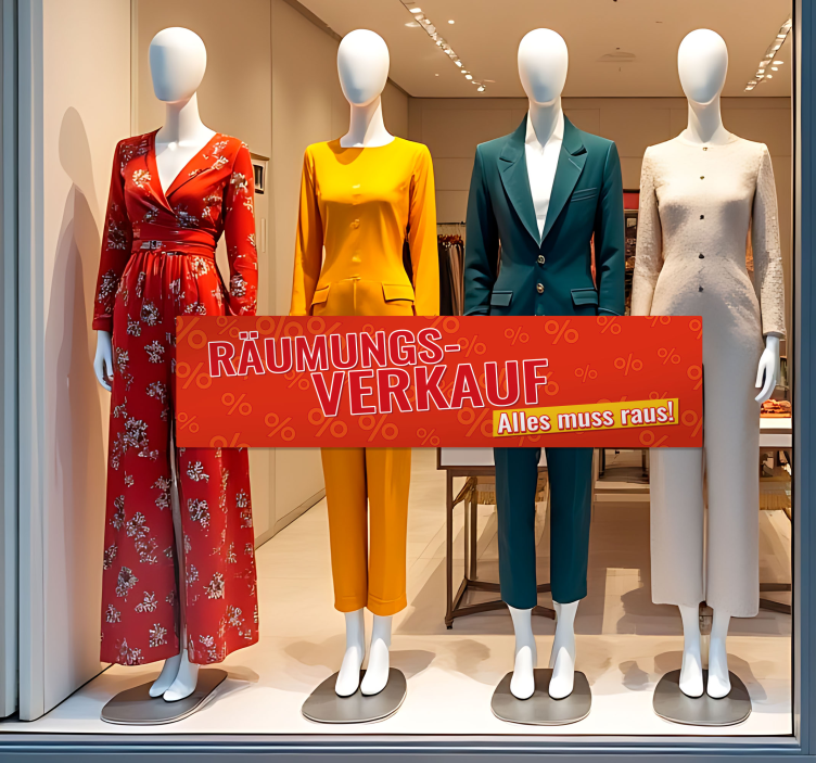 Referenz: A41732Entdecken Sie unseren einzigartigen Rabatt Aufkleber räumungsverkauf insgesamt, der mit einem modernen grafischen Design begeistert! Der Aufkleber zeigt auffällige Verkaufsbotschaften und lädt Kunden zum Stöbern und Kaufen ein. Mit seiner satinierten Oberfläche sorgt er für eine hervorragende Farbintensität und verhindert störende Reflexionen. Er ist perfekt, um die Aufmerksamkeit auf Ihre Angebote zu lenken!