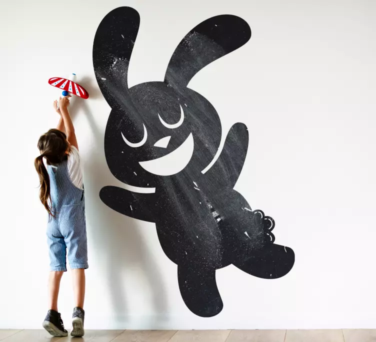 Verleihen Sie Ihrem Raum mit unserer Tafelfolie mit fröhlichem Hasenmotiv einen Hauch von Lebensfreude! Das Design zeigt einen glücklichen Hasen in spielerischer Silhouette, der mit seinem breiten lächelnden Gesicht und der wunderlichen Karikatur die Herzen von Kindern und Erwachsenen gleichermaßen erobert. Diese kreative Wanddekoration bringt Freude und Farbe in jedes Zuhause!