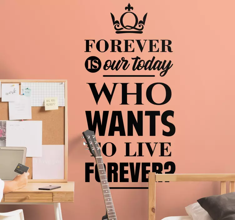 Der Wandspruch 'wer will ewig leben' bringt eine inspirierende Botschaft in Ihr Zuhause. Das Design ist in einer einfarbigen Typografie gehalten, die den Text klar und deutlich hervorhebt. Mit einem grafischen Element, das an Musik und Live-Performance erinnert, wird der Spruch zum Blickfang jeder Wand. Der Text vermittelt eine tiefgründige Botschaft über die Unvergänglichkeit und die ständige Suche nach Inspiration. Diese Kombination aus Typografie und einem kreativen Ansatz schafft eine Atmosphäre, die sowohl beruhigend als auch anregend ist.