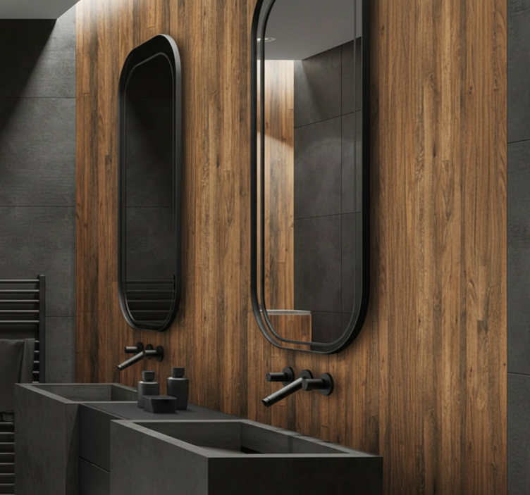 Wandtattoo badezimmer nussbaumholz optik spritzschutz