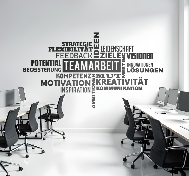Das Wandtattoo Büro wortwolke ist ideal, um eine positive Atmosphäre in Ihrem Arbeitsumfeld zu schaffen. Es inspiriert Ihre Mitarbeiter und fördert die Kreativität. Ein solches Wandtattoo bringt nicht nur Farbe ins Spiel, sondern auch Worte, die motivieren und zur Teamarbeit anregen. Verwandeln Sie Ihr Büro in einen Ort, an dem Ideen sprudeln und die Zusammenarbeit blüht!