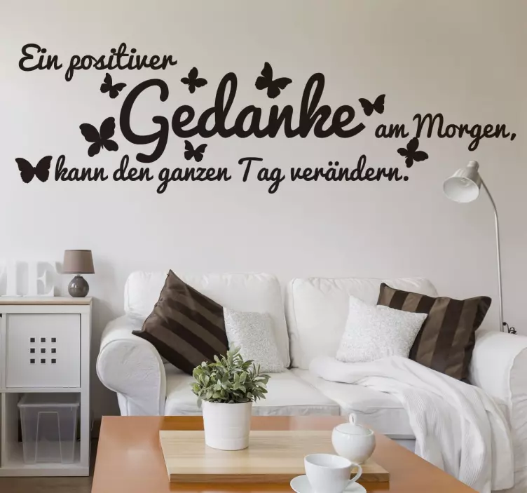 Referenz: A8842Bringen Sie mit diesem Aufkleber eine optimistische und lebensfrohe Einstellung an die Wände. Dekorieren Sie die Küche oder Ihr Schlafzimmer mit diesem Spruch, damit er Ihnen so früh wie möglich ins Auge fällt und Sie automatisch positiv denken.