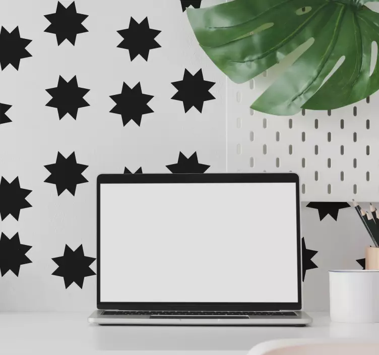 Referenz: A47990Dieses Design, das eine Reihe von schwarzen Sternformen präsentiert, verleiht jedem Raum eine dynamische Note. Die geometrischen Formen schaffen einen verspielten Kontrast zu einem hellen Hintergrund, der das visuelle Interesse steigert und gleichzeitig eine zeitgemäße Ästhetik bewahrt, die für verschiedene Umgebungen geeignet ist.