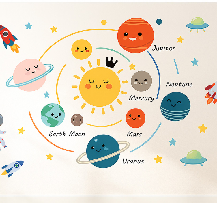 Referenz: A54265Entdecken Sie das faszinierende Wandtattoo Kinderzimmer planet wand kinder, das das Kinderzimmer in eine zauberhafte Welt voller Sterne und Planeten verwandelt. Mit lebendigen Farben und detailreichen Grafiken bringt unser Wandtattoo nicht nur Freude, sondern regt auch die Fantasie Ihres Kindes an. Ob im Spielzimmer oder im Schlafzimmer, die sanften Designs und die satinierten Oberflächen sorgen dafür, dass das Licht sanft reflektiert wird, ohne zu blenden. Diese Aufkleber sind nicht nur ein Blickfang, sondern auch eine Einladung zum Träumen und Entdecken!