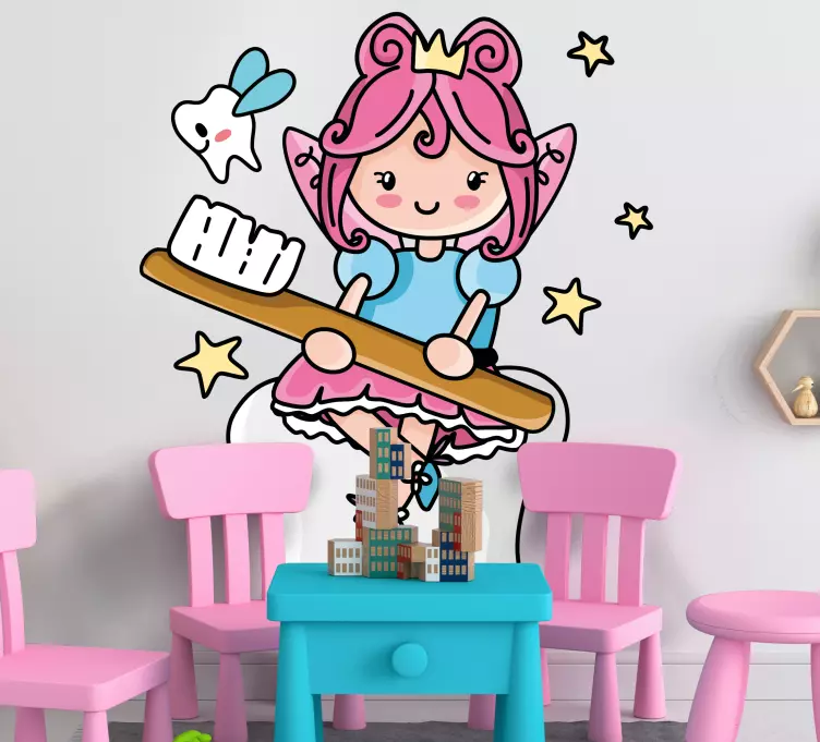Referenz: A48806Eine charmante Darstellung eines Zahnfee-Charakters, komplett mit einer Zahnbürste und einem verspielten Ausdruck. Dieses Design verleiht jedem Kinderzimmer einen magischen Touch, fördert fröhliche Zahnhygienegewohnheiten und fängt mit seinen bunten und fröhlichen Elementen die Fantasie ein.
