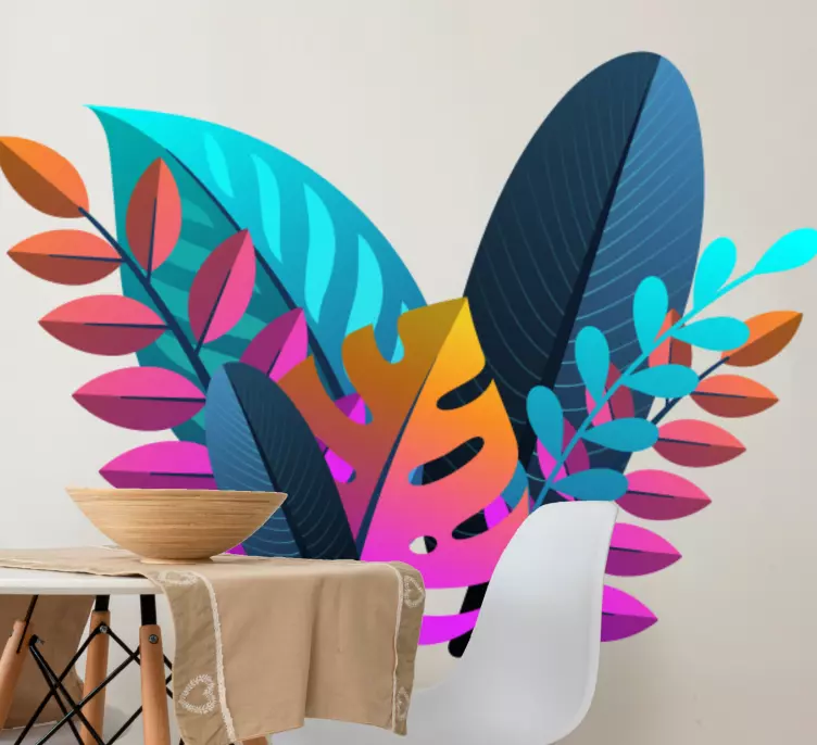Entdecken Sie die Schönheit der Natur mit unserem Wandtattoo natur lebendige blätter kollektion. Dieses lebendige Design zeigt eine Vielzahl von bunten Blättern, die tropische Laub und botanische Elemente harmonisch vereinen. Die dekorativen Details verleihen jedem Raum einen frischen, einladenden Charakter und schaffen eine Atmosphäre, die zum Entspannen und Genießen einlädt!