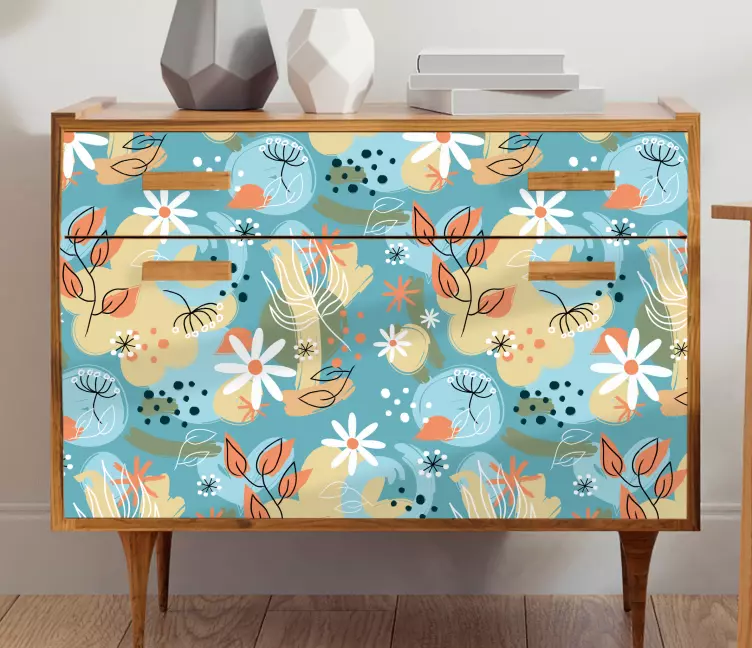 Verleihen Sie Ihrem Raum mit unserem Wandtattoo Ornament florale Muster Harmonie eine harmonische und farbenfrohe Note! Dieses wunderschöne Design kombiniert elegante Möbel, zarte Blumen und abstrakte Muster, die die Schönheit der Natur in Ihr Zuhause bringen. Die lebendigen Farben und die kunstvollen Details schaffen eine Atmosphäre, die sowohl beruhigend als auch inspirierend wirkt.