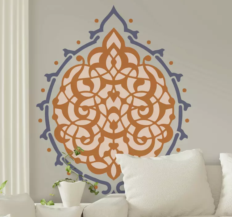 Verleihen Sie Ihrem Raum mit unserem Wandtattoo Ornament mit kunstvollem wandmuster ein einzigartiges Flair! Das design ist dekorativ und zeigt ein kompliziertes geometrisches Muster, das von arabischer Kunst inspiriert ist. Diese kulturelle und klassische Darstellung bringt eine harmonische Atmosphäre in jedes Zuhause und lässt Ihre Wände lebendig werden.
