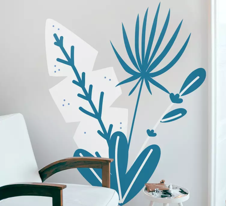 Verleihen Sie Ihrem Raum mit unserem Wandtattoo Pflanzen im stilisierten Blattmuster einen Hauch von tropischer Eleganz! Diese wunderschöne Illustration kombiniert die Schönheit von Blättern und Pflanzen mit einem modernen Design. Die dekorativen Blätter bringen die Natur direkt in Ihr Zuhause und schaffen eine beruhigende Atmosphäre, die zum Entspannen einlädt.