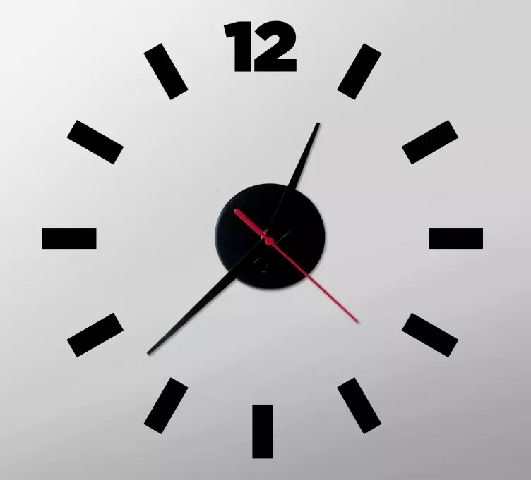 Entdecken Sie unser Wandtattoo Uhr im modernen minimalistischen stil, das durch sein einzigartiges grafisches Design besticht. Die stilvollen Streifen und die klare Anordnung der zwölf Stunden machen dieses Design zu einem echten Blickfang. In einem eleganten Schwarz und lebhaften Rot fügt es sich harmonisch in jede moderne Einrichtung ein. Dieses minimalistische Meisterwerk bringt nicht nur Stil in Ihr Zuhause, sondern erinnert Sie auch stets an die Zeit!