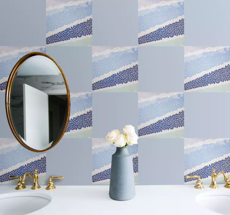 Entdecken Sie unser Wandtattoo Welt abstraktes gemustertes mosaik, das mit einem einzigartigen grafischen Design begeistert. Die harmonischen Blautöne und die ansprechenden geometrischen Formen sorgen für ein stilvolles Ambiente in Ihrem Zuhause. Mit einem strukturierten Design, das an kunstvolle Fliesen und Mosaik erinnert, bringt dieses Wandtattoo die Wellen der Kreativität direkt an Ihre Wände. Es ist die perfekte Kombination aus Eleganz und modernem Einrichtungsstil!
