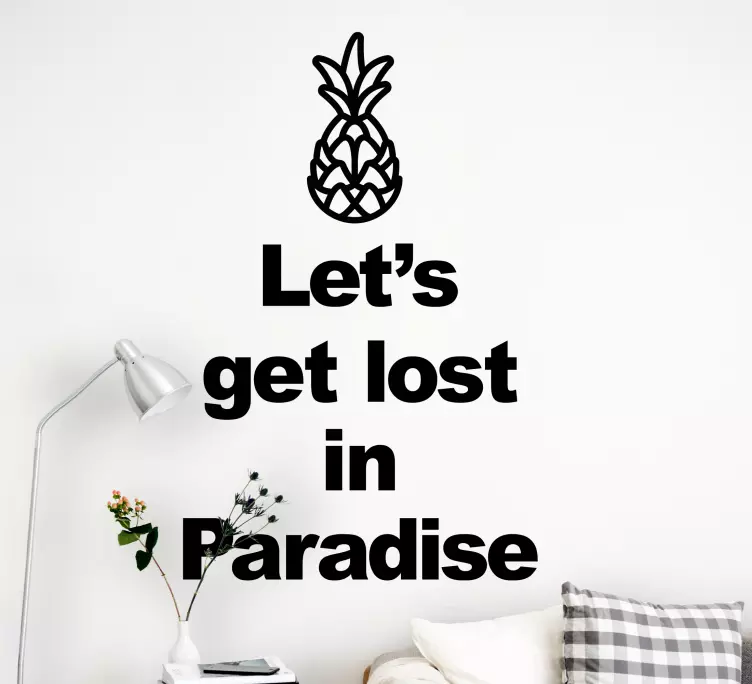 Verleihen Sie Ihrem Zuhause mit unserem Wandtattoo Welt Ananas Zitat Kunst eine fruchtige Note! Dieses einzigartige Design kombiniert die erfrischende Frucht Ananas mit inspirierenden Texten, die Sie daran erinnern, dass das Leben manchmal verloren geht, aber das Paradies immer in der Heimat zu finden ist. Die harmonische Verbindung von Kunst und Lebensweisheit macht dieses Wandtattoo zu einem idealen Dekorationsstück, das jeden Raum aufhellt und Ihnen täglich Inspiration bietet.
