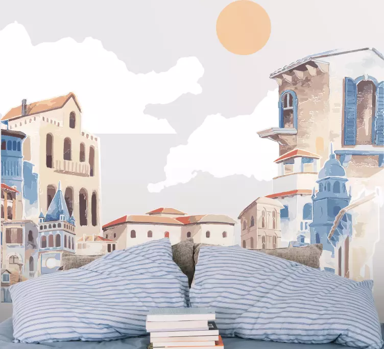 Unser Wandtattoo Welt charmante stadtlandschaft bringt das Flair einer malerischen Stadt direkt in Ihr Zuhause. Mit einem kunstvollen Design, das eine bezaubernde Stadt mit ihren charmanten Gebäuden und liebevoll gestalteten Dörfern in sanften blauen und warmen Tönen darstellt, verwandelt dieses Wandtattoo jeden Raum in eine Oase der Inspiration. Die Architektur und die strahlende Sonne, die auf die Aquarellmalerei trifft, verleihen dem Stadtbild eine lebendige Tiefe, die Sie täglich erfreuen wird!
