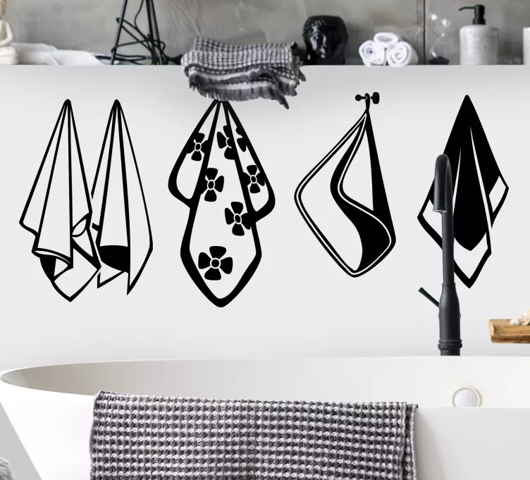 Entdecken Sie das beeindruckende Design unseres Wandtattoo Welt elegante handtuchhalterung, das stilvolle Silhouetten von Handtüchern in Ihr Bad bringt. Dieses dekorative Element verleiht Ihrem Badezimmer nicht nur Eleganz, sondern fügt sich harmonisch in Ihr gesamtes Wohndesign ein und verwandelt Ihren Raum in eine Oase der Ruhe und des Stils.