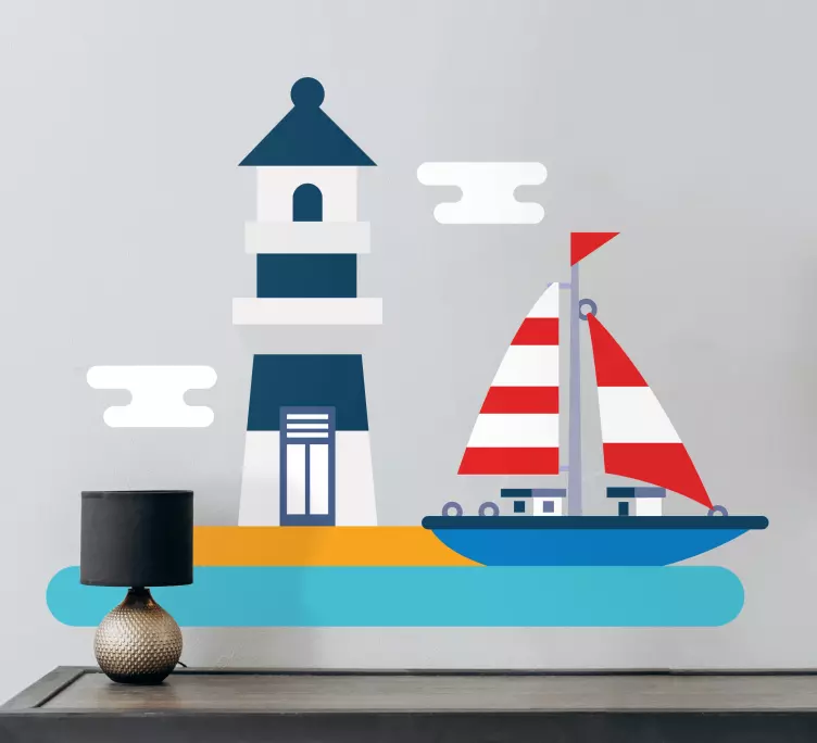 Wandtattoo welt leuchtturm und segelboot