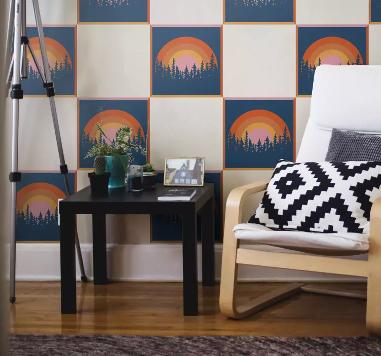 Entdecken Sie die faszinierende Welt unseres Wandtattoos Welt Sonnenuntergang im Wald, das mit einem atemberaubenden Design begeistert. Die leuchtende Sonne, die hinter einem majestätischen Wald untergeht, schafft eine harmonische Landschaft, die die Schönheit der Natur einfängt. Die sanften Farben und die stilvollen Fliesen verleihen Ihrem Raum eine besondere Atmosphäre, die zum Träumen einlädt!