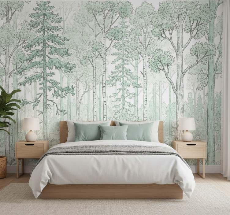 Fototapete wald mint waldskizze