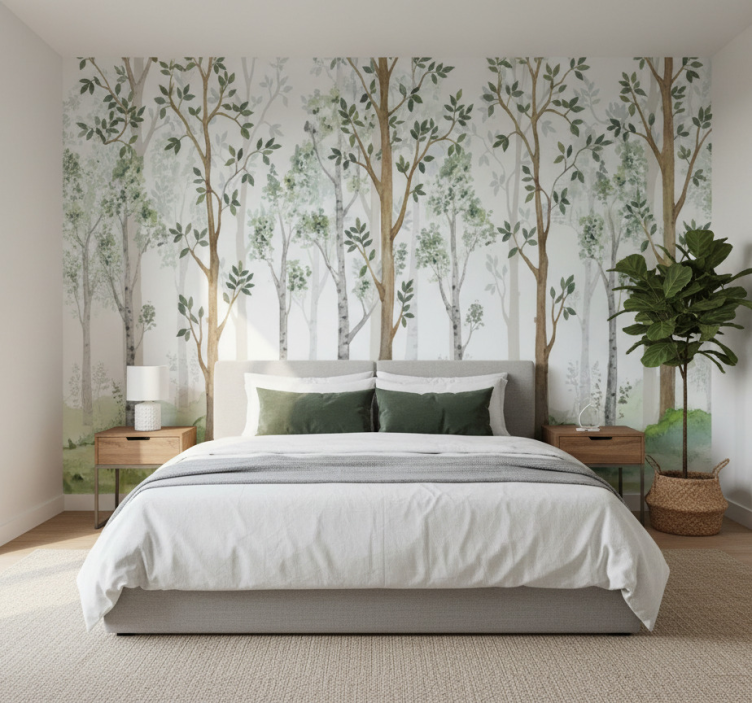 Die Fototapete Wald mit minimalistischem botanischen motiv ist mehr als nur ein dekoratives Element; sie verwandelt jeden Raum in eine Oase der Ruhe und Inspiration. Diese Fototapete bringt nicht nur Farbe, sondern auch Leben in Ihre Wände. Sie eignet sich perfekt für Wohnräume, Schlafzimmer oder Büros und fördert eine positive Atmosphäre, die Kreativität und Entspannung unterstützt. Genießen Sie die Verbindung zur Natur, die dieses Design in Ihr Zuhause bringt und schaffen Sie einen Raum, der zum Verweilen einlädt!