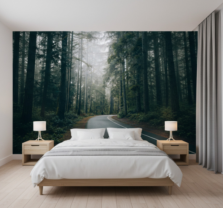 Um die Fototapete Wald nebeliger Kiefernweg anzubringen, tragen Sie einfach den Klebstoff auf die Wand auf und verwenden Sie eine Rolle, einen Pinsel und einen Cutter, um die Tapete perfekt zu positionieren. So können Sie in kürzester Zeit ein beeindruckendes Wandbild schaffen!