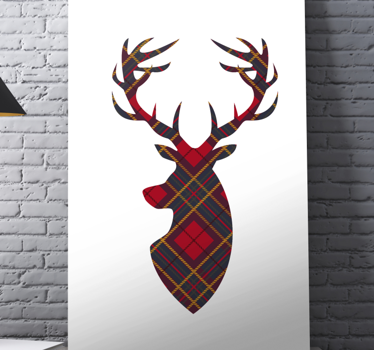 Referenz: Q6574Eine auffällige Darstellung eines Hirschkopfes zeigt komplizierte Karomuster und hebt seine majestätischen Geweih hervor. Das Design fängt das Wesen der Tierwelt ein und verleiht einen Hauch von rustikalem Charme, wodurch es zu einem einzigartigen Blickfang für jede moderne Ästhetik wird.