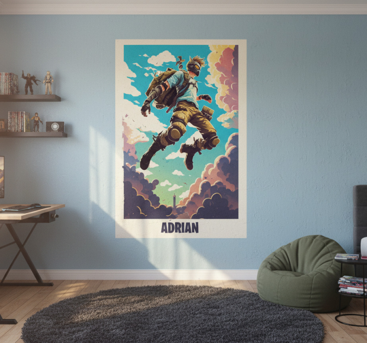 Referenz: G732Entdecken Sie das Poster Teenagerzimmer epischer Charakter mit Namen, das in jedem Raum einen Hauch von Abenteuer und Individualität verleiht! Dieses einzigartige Design kombiniert eine hohe Farbintensität mit einem halbmatt Finish, das Reflexionen vermeidet und somit die visuelle Wirkung verstärkt. Mit einer Grammatur von 180 g/m² ist dieses Poster ideal für die Dekoration und wird schnell zum Blickfang im Jugendzimmer.