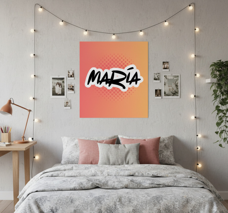 Das Poster Teenagerzimmer mit personalisierten namenskunst ist die ideale Wahl, um jedem Raum eine persönliche Note zu verleihen! Es transformiert das Ambiente und bringt eine fröhliche Atmosphäre, die Jugendliche begeistert. Mit seinem einzigartigen Design wird es zum Blickfang und sorgt dafür, dass sich Ihr Teenager in seinem Zimmer wohlfühlt. Dieses Poster ist nicht nur eine Dekoration, sondern auch eine Möglichkeit, die Persönlichkeit Ihres Kindes auszudrücken und sein Zimmer in einen inspirierenden Rückzugsort zu verwandeln.