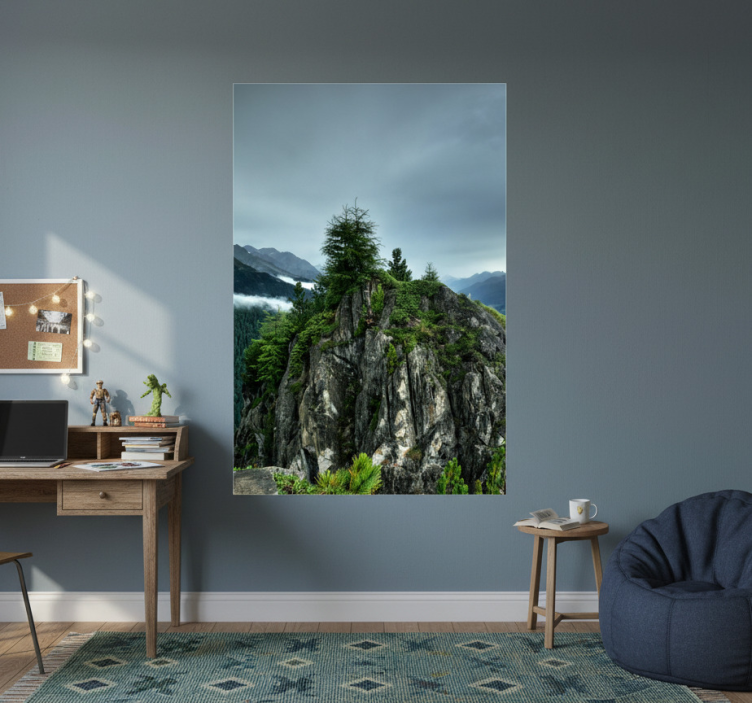 Das Poster Wohnzimmer poster wohnzimmer einzelner felsen im grünen wald ist die perfekte Wahl, um Ihrem Wohnraum eine frische und inspirierende Note zu verleihen. Die harmonische Darstellung der Natur bringt Ruhe und Frieden in Ihr Zuhause. Es ist ideal geeignet für kreative Köpfe, die eine Verbindung zur Natur suchen und ihren Raum mit einem eindrucksvollen Kunstwerk aufwerten möchten. Lassen Sie sich von der Lebensfreude und der Schönheit des Waldes inspirieren!