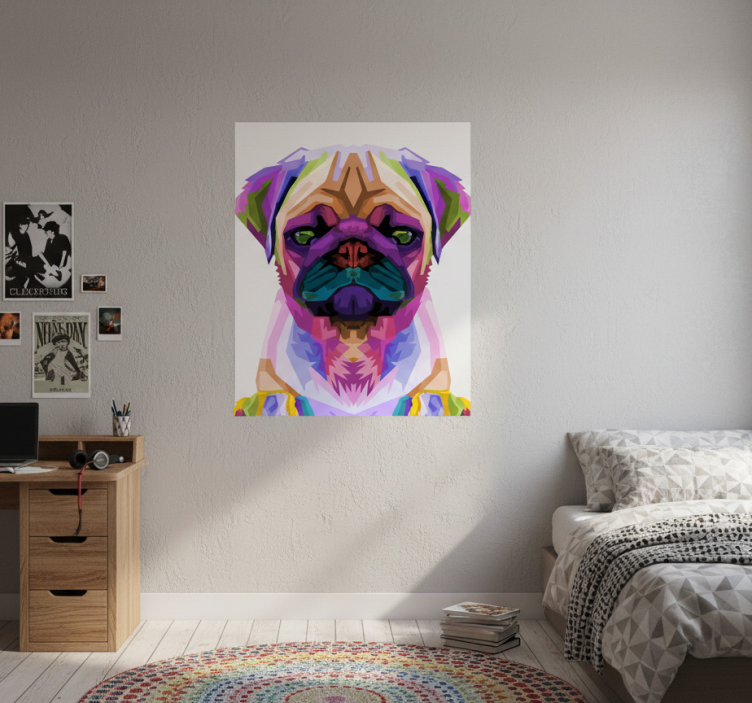Das Poster Wohnzimmer Pop Art Mops ist die perfekte Wahl für alle, die ihrem Zuhause einen Hauch von Kreativität und Lebensfreude verleihen möchten! Mit seinem charmanten Design zieht es die Blicke auf sich und sorgt für eine fröhliche Atmosphäre. Es ist ideal, um eine gemütliche Ecke zu gestalten oder eine leere Wand in einen echten Hingucker zu verwandeln. Lassen Sie sich von der positiven Ausstrahlung dieses Posters inspirieren und bringen Sie Farbe in Ihr Leben!