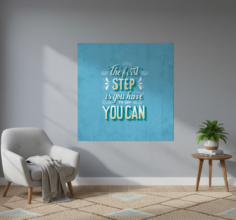 Referenz: G820Bringen Sie frischen Wind in Ihr Wohnzimmer mit unserem einzigartigen Poster Wohnzimmer Zitat der erste Schritt. Dieses kunstvolle Design vereint eine inspirierende Botschaft mit einer ästhetisch ansprechenden Grafik, die sowohl modern als auch zeitlos wirkt. Mit einer beeindruckenden Farbintensität und einem halbmattierten Finish ohne Reflexionen zieht es alle Blicke auf sich und schafft eine harmonische Atmosphäre in Ihrem Zuhause.