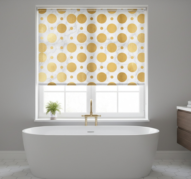 Rollo fenster badezimmer mit goldenen marmorpunkten