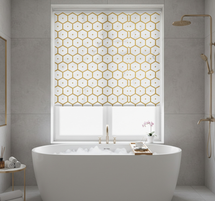 Rollo fenster badezimmer mit hexagonalem goldmarmor-muster