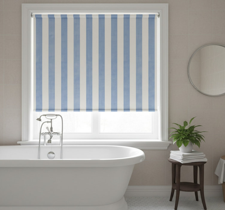 Rollo fenster blau mit blau und weiß streifen