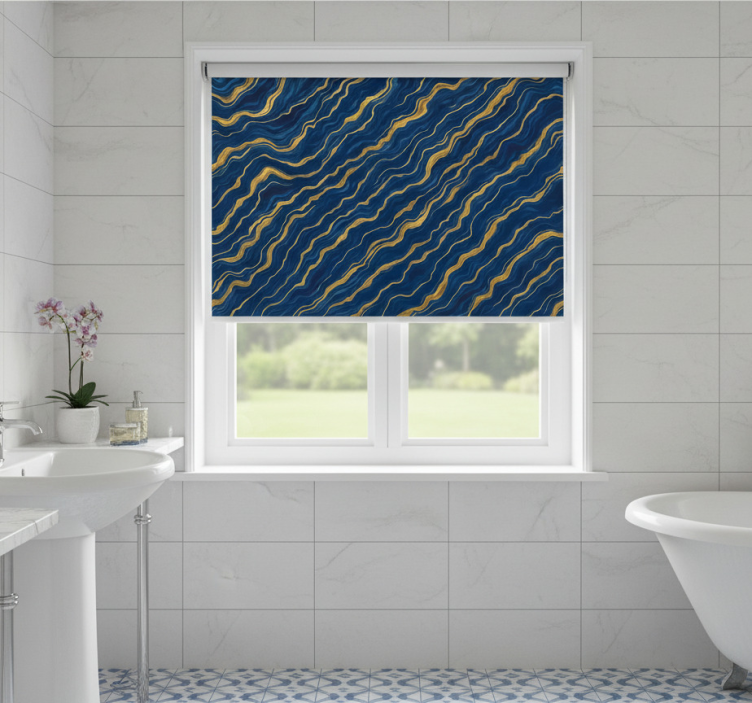 Rollo fenster blau mit blauem und goldenem marmor