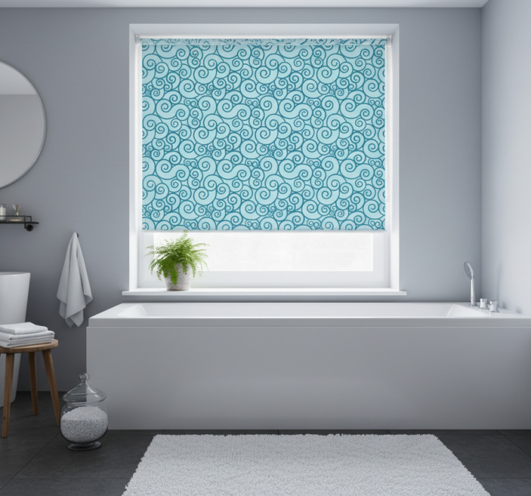 Rollo fenster blau mit wirbelndem muster