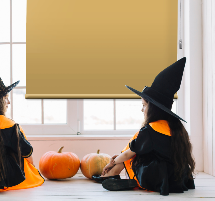 Entdecken Sie das stilvolle Rollo Fenster Blickdicht in der eleganten goldbeigen Farbe. Mit seinem minimalistisch gehaltenen Design in leuchtendem Gelb und ansprechenden Motiven von Kürbissen und Hexen bringt es den Charme des Herbstes und die Magie von Halloween direkt in Ihr Zuhause. Dieses Rollo ist nicht nur ein praktisches Element, sondern auch ein echter Hingucker, der jeden Raum aufwertet!