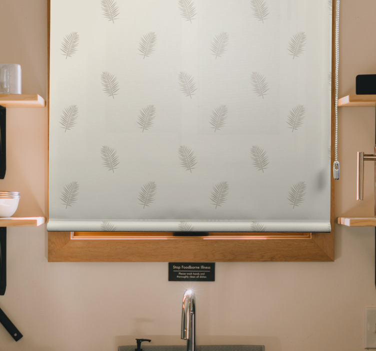 Unser Rollo Fenster Blumen und Pflanzen beiges blattmuster besticht durch ein harmonisches Design, das die Schönheit der Natur in Ihr Zuhause bringt. Mit einem eleganten Blattmuster, das an skandinavische Ästhetik erinnert, fügt es sich perfekt in jede Inneneinrichtung ein und sorgt für eine beruhigende Atmosphäre. Die stilvollen Blätter verleihen Ihrem Raum einen frischen, natürlichen Touch und machen es zu einem idealen Blickfang für jeden Raum.