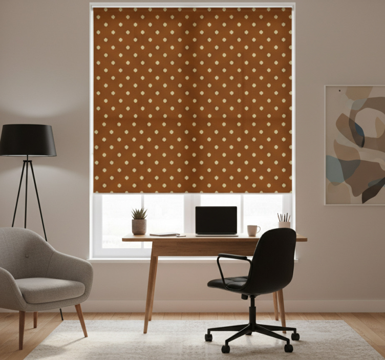 Rollo fenster büro braunes kreuzmuster
