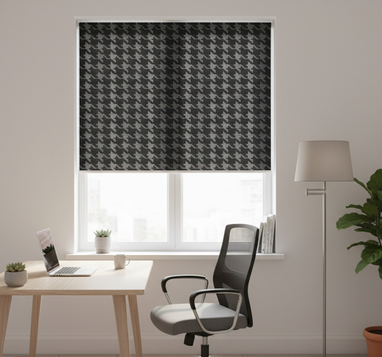 Referenz: E6189Das Rollo Fenster Büro im Hahnentritt-Muster vereint stilvolles Design mit funktionalen Eigenschaften. Das ansprechende Hahnentritt-Muster sorgt für einen eleganten Akzent in jedem Büro und bringt eine moderne Note in Ihre Arbeitsumgebung. Die Kombination aus einfacher Montage und der Möglichkeit, verschiedene Texturen zu wählen, macht dieses Rollo zu einer idealen Wahl für jeden Raum. Es schützt vor direkter Sonneneinstrahlung und bietet gleichzeitig eine private Atmosphäre, während die Regulierung der Raumtemperatur für ein angenehmes Arbeitsklima sorgt.